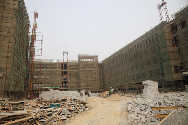 同时,四标段的图书馆按计划已完成基础施工;六标段的高层学生宿舍主体已经完成15层;科学校区南门、北门、东门、西门四个大门的施工也已接近尾声,将如期交付使用。