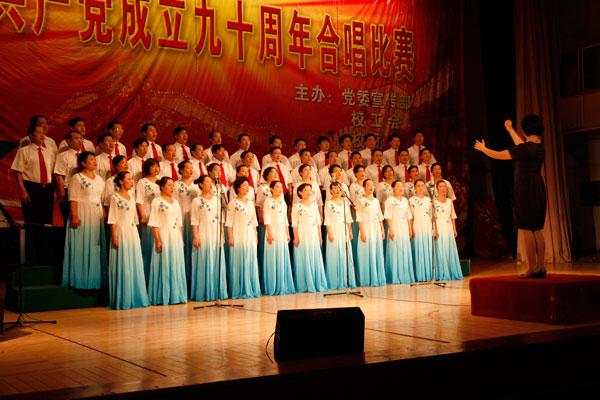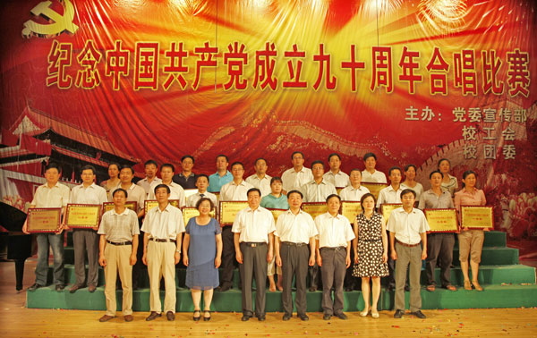 6月30日下午,由校党委宣传部、校工会、校团委联合主办的庆祝中国共产党成立90周年教职工合唱比赛“颂歌献给党”在大礼堂隆重举行。校领导林世选、剧乂文、张胜利、张希凡、窦效民、陈江风、吕彦力、赵继红、安士伟出席观看并参加各自所在分工会的合唱节目。来自全校各单位的近1200名教职工组成22支代表队参加比赛。千余名师生现场观看了比赛。