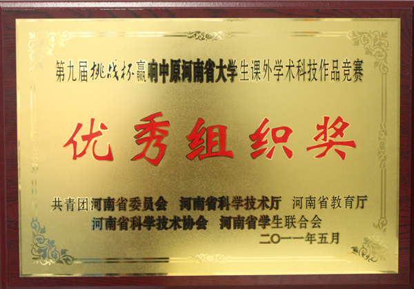 我校历来重视“挑战杯”竞赛活动,为迎接2011年河南省及全国“挑战杯”大学生课外学术科技作品竞赛,相关职能部门从今年初就启动了“挑战杯”竞赛校内选拔赛,组织评审专家对来自校内15个单位选送的200余件参赛作品进行了集中评审,最终选拔出36件优秀作品代表我校参加了河南省的“挑战杯”竞赛。