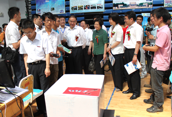 大赛分匿名评审、现场质问、作品展示、成果转化四个阶段,在现场询问环节,我校的部分参赛作品引起了专家的兴趣,多名专家对我校作品进行了询问并提出了指导意见;在作品展示阶段,副省长徐济超、团省委书记侯红等有关领导参观了我校参赛作品展示区域。