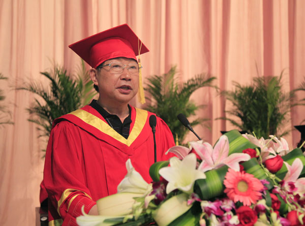 校长剧乂文在毕业典礼上发表讲话。他代表学校和校学位评定委员会向所有圆满完成学业的同学表示最热烈的祝贺,并由衷地感谢同学们为学校建设发展所做的贡献。他表示,同学们在校学习深造的这几年,正是学校大发展、大建设、大提高的时期,同学们作为学校人才培养的主体,与学校一起成长,见证并参与了学校的快速发展,学校前进的每一个足迹,都留下了你们拼搏进取的印记。