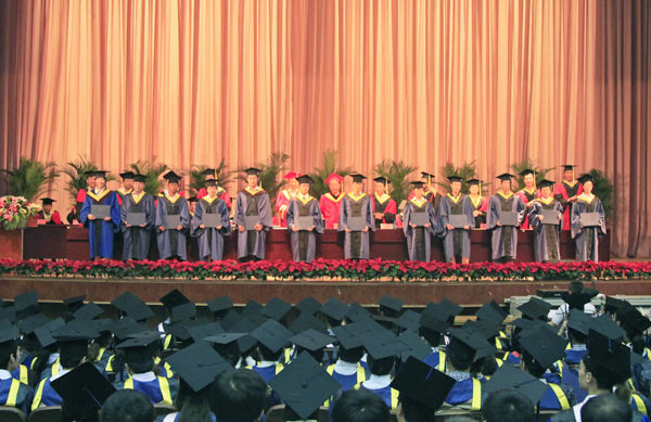 欢快的乐曲声中,校领导先后为十佳毕业生、优秀毕业生代表及毕业研究生颁发学位证书及有关获奖证书。