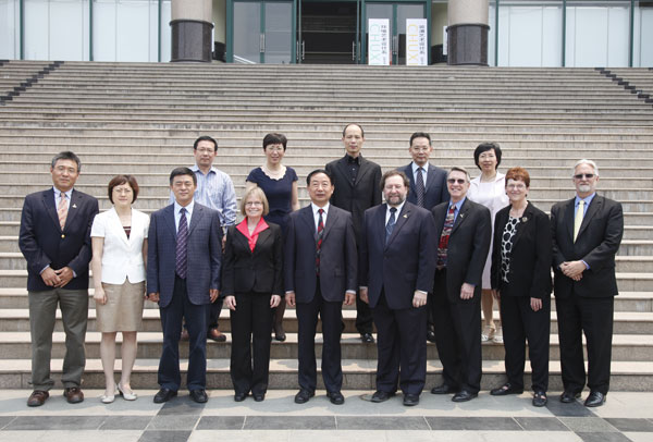 5月26日,美国纽约州立大学布法罗学院代表团对我校进行了友好访问。代表团成员包括纽约州立大学布法罗学院校长艾伦・波德夫斯基、纽约州立大学研究基金会主任、副校长泰德・德科、艺术与人文学院院长本杰明・克里斯蒂、国际与交流学院副院长莉安・格蕾丝、艺术与人文学院美术系教授蒋临夏以及校长夫人罗妮・波德夫斯基女士。