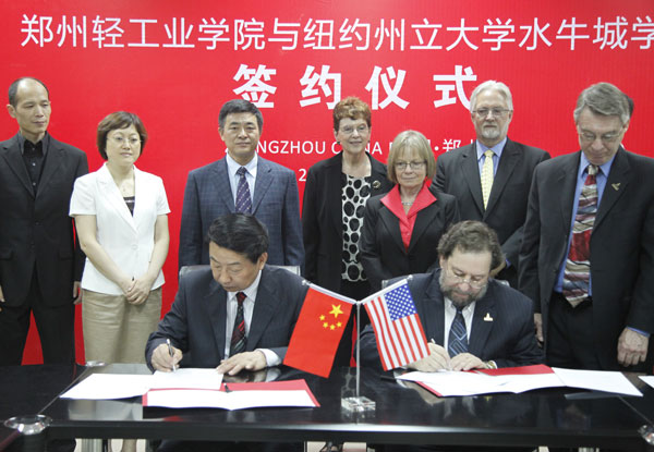 布法罗学院代表团一行和我校校长剧乂文,副校长吕彦力、赵继红,以及国际合作与交流处、艺术设计学院及国际教育学院的有关负责人出席了签约仪式。剧乂文校长和艾伦・波德夫斯基校长分别代表两校签署了合作协议。在签约仪式上,两校校长表达了对两校即将开展的教师、学生、科研等多层面交流合作的热切期望,并表示将不遗余力地推动中美院校间的教育合作与交流,为两校的学生与教师开展广泛交流创造条件。