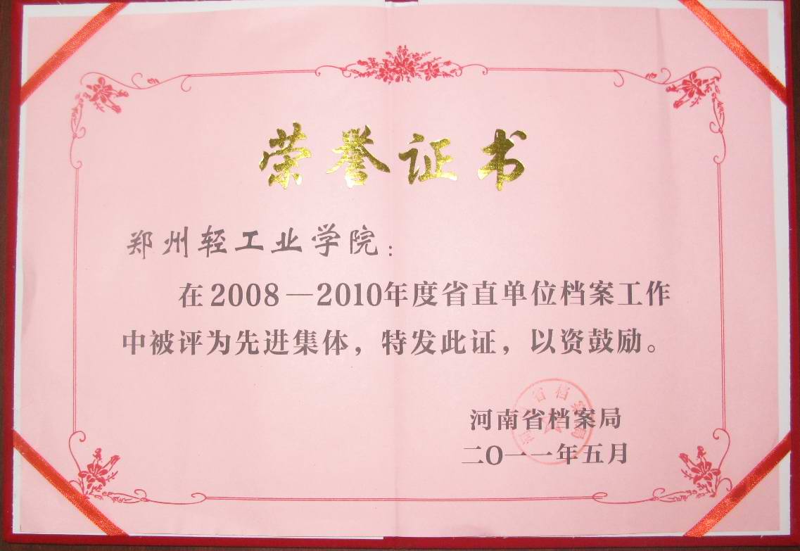 5月24日上午,省直单位档案工作会议在河南广播大厦召开,会议表彰了2008-2010年度省直单位档案工作先进集体和先进个人。我校档案工作受到表彰,荣获“2008-2010年度省直单位档案工作先进单位”荣誉称号。同时,在河南省档案局副局长刘延龙的省直档案工作总结讲话中,特别指出并肯定了我校档案信息化建设工作取得的成绩。