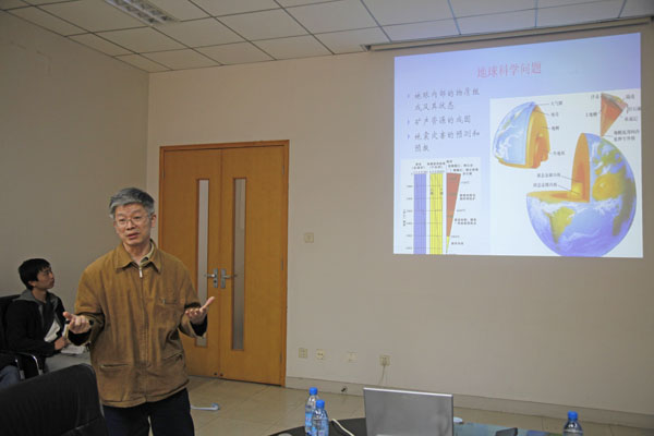 访问期间,郑海飞教授为我校师生做了题为“金刚石压腔高温高压实验技术及其应用”的学术报告。郑海飞教授主要介绍了高压物理学研究领域的最新进展,并结合其所在课题组近年来在该领域取得的科研成果,详细介绍了金刚石压腔实验技术、压标物质选择和高温高压下稳定同位素分馏作用等方面所涉及的科学与技术问题。报告会气氛热烈,师生就相关问题与郑海飞教授进行了热烈的讨论。