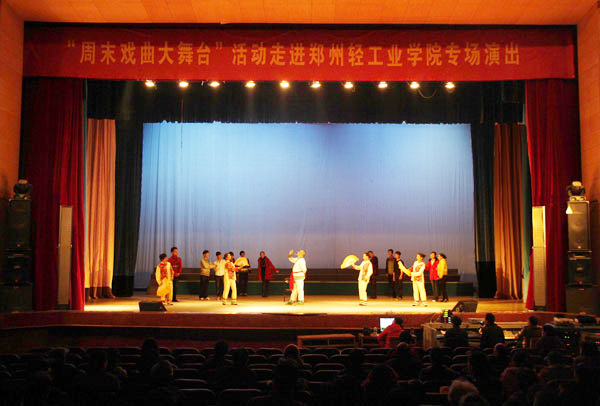12月10日、11日,郑州市豫剧院“周末戏曲大舞台”专场演出活动在我校大礼堂成功举行,为我校师生奉献了《老子・儿子・弦子》和《狸猫换太子》两场精彩的曲目。党委副书记张胜利亲切慰问全体演职人员并与相关部门负责人及近千名师生一起观看了演出。