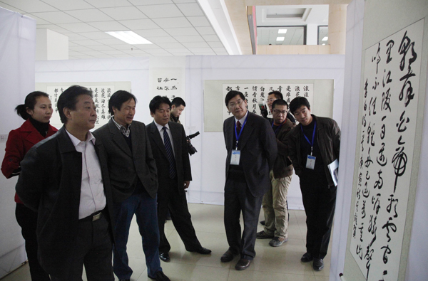 汇报会后,三位专家在副校长陈江风及教务处、艺术教育中心、校团委负责人的陪同下,参观了我校师生书法绘画摄影作品展,实地察看了公共艺术教育场所,观摩了“钢琴艺术欣赏”课程的教学,认真查阅了公共艺术教育评估材料,并分头组织了教师座谈会和学生座谈会了解有关情况。