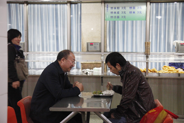 会后督查组来到学生食堂实地调查了解学生食堂伙食供应情况,听取学生对学校伙食供应的意见。
