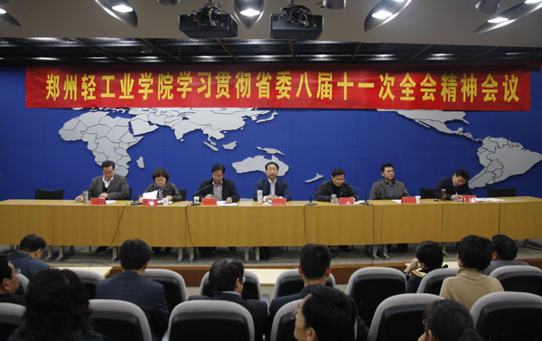 校长剧乂文以《认真贯彻落实省委全会精神 推动学校事业科学发展》为题发表讲话,就如何学习贯彻全会精神、做好学校今后的工作提出了明确要求。第一,充分认识会议取得的历史成果,认真贯彻省委全会精神。全会通过了《中原经济区建设纲要》和《中共河南省委关于制定全省国民经济和社会发展第十二个五年规划的建议》,指出了我省未来五年发展的指导思想。认真学习、全面贯彻省委全会精神,对于进一步做好学校各项工作具有重要指导意义。各单位和广大党员干部职工要充分认识学习贯彻省委全会精神的重要性,切实把学习宣传贯彻全会精神作为当前和今后一个时期的首要政治任务,摆上重要日程,加强组织领导,精心安排部署。