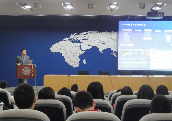 11月10日上午,中国科学院微生物研究所博士生导师、中国酶工程专业委员会主任、中国科学院真菌地衣系统学重点实验室副主任金城研究员应邀来校讲学,为我校食品与生物工程学院部分师生作了一场题为“丝状真菌蛋白质糖基化修饰的功能基因组学研究”的学术报告。