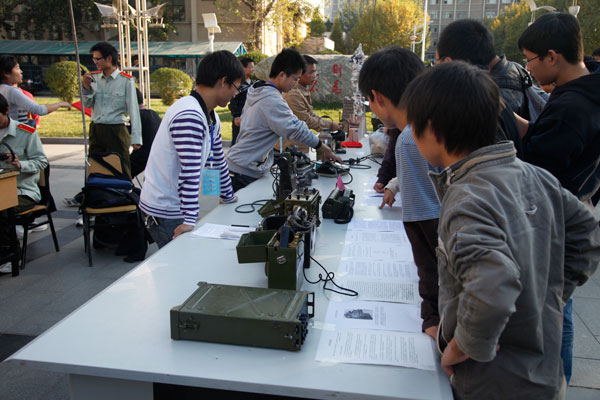 2010年11月4日下午,我校电气信息工程学院“无线电运动协会”在图书馆广场举办了军用通讯设备收藏展。