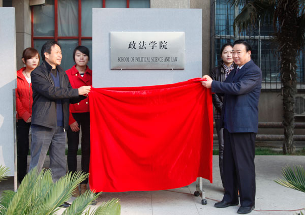 党委书记林世选和副校长陈江风共同为“政法学院”和“社会发展研究中心”揭牌。