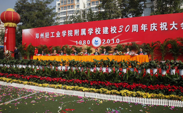 庆祝大会上,省教育厅远教办主任张怀君、郑州市教育局副局长郭金汉分别代表省市教育主管部门对附属学校30年校庆表示祝贺。副校长安士伟在讲话中对附属学校的发展态势、取得的成绩表示肯定,并希望附属学校以校庆为契机,与时俱进,开拓创新,为郑州的教育事业和经济社会发展做出更大贡献。附属学校校长刘俊校在致辞中总结了建校30年来取得的成就和办学经验并表达了继续建设“教育优质、科研领先、特色鲜明、条件先进”的精品学校的愿望和信心。