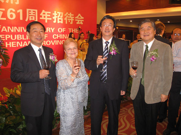 9月29日晚,中州宾馆三号楼中原厅内,张灯结彩,喜气洋洋。河南省人民政府在这里隆重举行国庆招待会,邀请在豫工作的外国专家、港澳台同胞、华侨代表及各界人士欢聚一堂,共同庆祝中华人民共和国成立61周年。