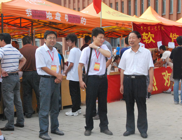 在迎新工作现场,剧校长对参与迎新的广大师生的辛勤劳动表示感谢和慰问,对2010级新同学和家长表示热烈欢迎,同时勉励迎新工作人员继续为新生和家长提供优质服务,让他们亲身体验到学校的温暖和热情。