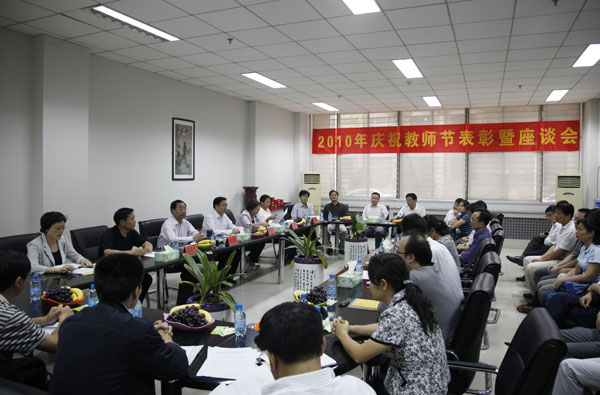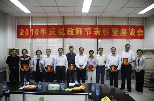 9月9日下午,2010年庆祝教师节表彰暨座谈会在图书馆第三会议室举行,校领导林世选、剧乂文、张胜利、张希凡、陈江风、赵继红出席会议。2008―2010学年度“三育人”先进集体、先进个人代表,在教育战线工作满三十年的教职工代表,省级教学名师代表、校级特聘教授代表、省级骨干教师代表、教授博士代表,以及部分职能处室负责人等参加座谈会。会议由副校长赵继红主持。