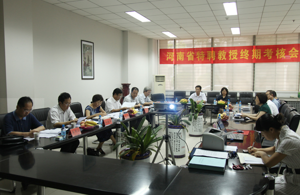 会议分两个阶段进行。第一阶段由省教育厅高教处副处长李培俊主持。第二阶段由考核专家组组长、河南师范大学校长焦留成教授主持。张金仓、李春文两位省级特聘教授依据聘任合同,从科研成果、人才培养、学科建设、社会服务等方面向专家组汇报了各自在聘期内的工作情况,并接受了专家组的质询。