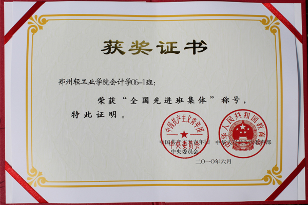 会计学06-1班班风优良,同学团结拼搏、积极进取,在思想建设、学风建设、文体活动、社会实践、科技创新等方面取得了突出成绩,曾先后荣获校级“先进团支部”、“先进班集体”、“十佳红旗团支部”和“河南省先进班集体”、“河南省五好团支部”等称号。