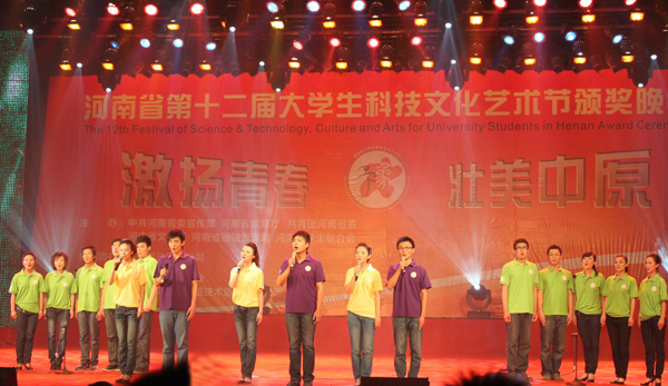 颁奖晚会节目精彩纷呈,我校大学生参加了13个节目中6个节目的表演,充分展示了我校大学生的表演水平、艺术素养和精神风貌。