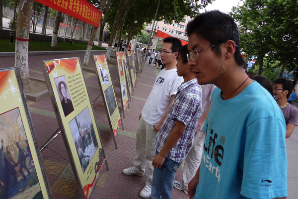 本次展览共展出图片100余幅,分为“京汉铁路的修建”、“早期铁路工人斗争”、“京汉铁路总工会的成立”、“京汉铁路‘二四’大罢工”、“‘二七’惨案”、“革命烈士先进事迹介绍”等六大版块,图片真实、内容详实、制作精湛,以生动的资料、图文并茂的形式,展示了京汉铁路大罢工的起因、经过和结果。 展览吸引了不少师生驻足观看,并在观后留言薄上写下了感想体会。