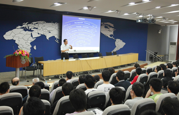 经福谦院士就静态高压和动态高压的形成、冲击波高压下新材料的合成等问题进行了深入浅出的阐述,为大家展示了高压条件下神秘的物质世界。经院士的报告内容丰富,包括自然界元素的形成机理及其对人类合成新物质的启示、压力的改变对材料性质的影响、静高压的产生及现状、冲击波产生动态高压的原理及冲击波高压在新材料合成的应用。经福谦院士指出,在高压条件下物质的性质会发生十分奇特的变化,这为人们研究物质性质及其变化提供了极其重要的科学平台。经福谦院士还热情地勉励青年学子发愤努力,潜心学习,勇攀科技高峰。