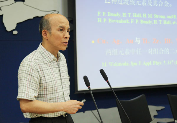 随后,陪同经福谦院士来访的西南交通大学博士生导师洪时明教授为我校师生做了题为“高压合成金刚石新溶媒及其机理研究”的学术报告,详细介绍了高压条件下制备金刚石的最新进展、金刚石新溶媒国内外研究现状和西南交通大学近期取得的最新研究成果。报告会后,不少老师和同学踊跃发言、积极提问,与经福谦院士和洪时明教授进行了热烈的探讨与交流。