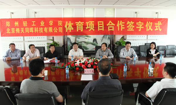 5月20日上午,我校与北京倚天同晖科技有限公司体育项目合作签字仪式在办公楼二楼大会议室举行。副校长龚毅、陈江风,北京倚天倚天同晖科技有限公司总经理郭轶晨等出席签字仪式。