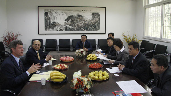副校长吕彦力教授、赵继红教授及其他有关人员在国际教育学院会议室与Klein校长和Parikh教授就两校拟开展的教师及学生交流项目等进行了深入的探讨和沟通。