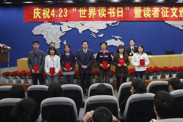 4月23日下午,我校举行庆祝世界读书日暨读者征文颁奖大会。党委书记林世选、副校长陈江风出席大会并为“中国心”读者征文活动获奖学生颁奖。相关职能部门负责人与师生代表参加了大会。大会由图书馆馆长王培义主持。