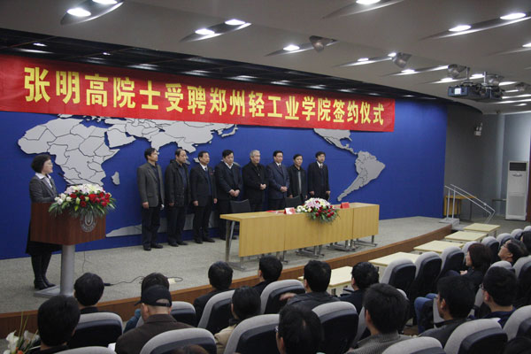 张明高院士在签约仪式上发言,表示很高兴受聘郑州轻工业学院。他认为,近年来郑州轻院在学科建设和科学研究等方面取得了很大成绩,今后将尽自己的一份力量,与团队其他成员一起为学校的科研和学科建设做出贡献。