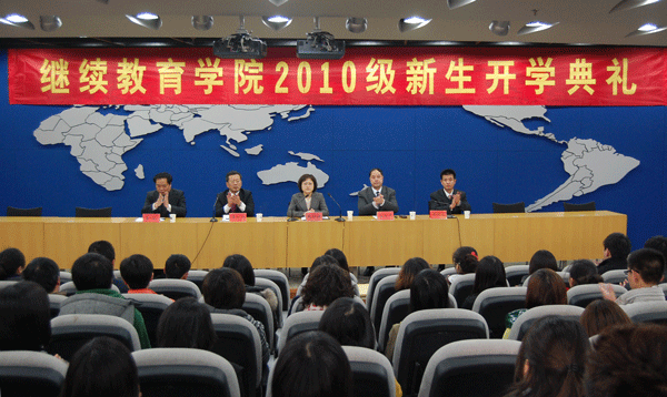 3月19日上午,我校继续教育学院2010级函授新生开学典礼在图书馆学术报告厅隆重举行。副校长赵继红教授到会祝贺并致辞。第三党总支、继续教育学院、合作办学管理处负责人,函授新生各班班主任以及新生代表参加了开学典礼。