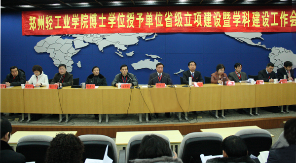 会议期间,各代表团分组讨论了《郑州轻工业学院博士授予单位省级立项建设规划及方案(讨论稿)》,原则通过了该规划及实施方案,建议进一步修改完善后颁布实施。会议审议并原则通过了郑州轻工业学院学科建设管理文件及学位与研究生教育管理文件,建议进一步修改完善后尽快公布实施。会议还对三个博士学位授予建设学科进行了授牌,三个博士学位授予建设学科分别进行典型发言,介绍了各自学科建设的经验与作法。我校获评2009年河南省优秀硕士学位论文的指导教师代表发言介绍了研究生培养经验。