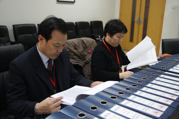 12月29日下午至30日上午,河南省高校党建工作评估专家组组长郭正让、副组长程云和成员张建国、陈亚非、王大力一行,在图书馆第三会议室查阅了我校党建工作评估支撑材料。 专家们对照评估指标体系,认真查阅了我校关于领导班子建设、组织机构和队伍建设、党的基层组织建设、宣传思想工作以及群团、统战工作等方面的评估材料,并就有关问题向工作人员进行了询问。