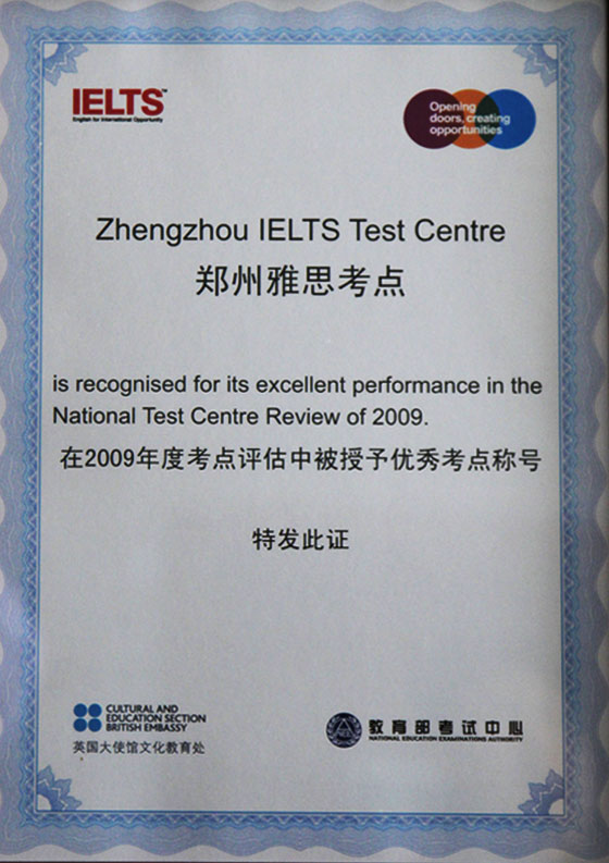 日前,在成都召开的全国雅思考点年会上,我校雅思考试中心被授予了“优秀考点”的荣誉称号。英国驻华使馆文化教育处向我校考点颁发了证书,并致函学校领导,对我校考试中心一年来的工作,尤其是在考点评估当中的优异表现予以赞扬和感谢。
