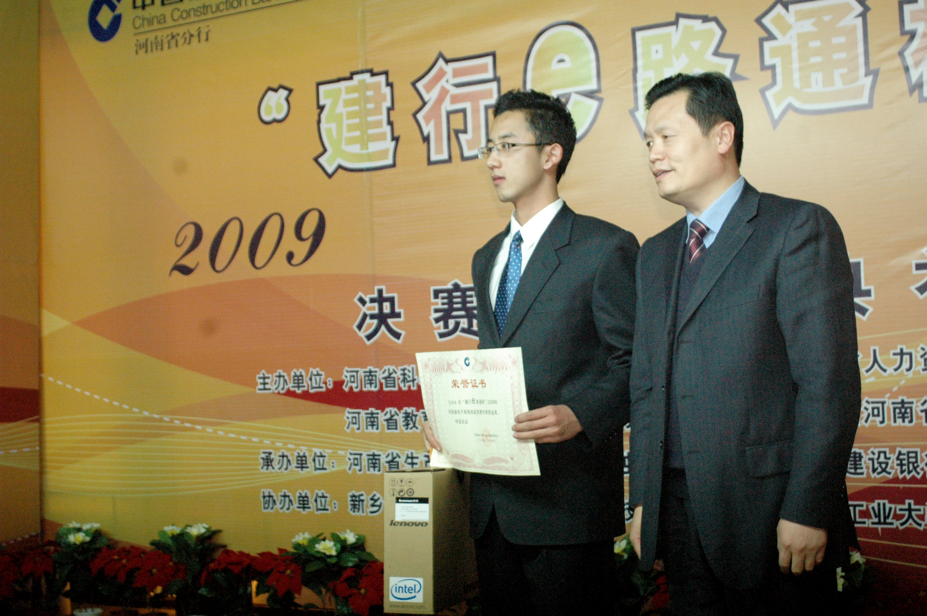 11月25日,由河南省科学技术厅、工业和信息产业厅、人力资源和社会保障厅、教育厅、商务厅和共青团河南省委员会共同主办的“建行e路通杯”2009年河南省电子商务技能竞赛个人决赛圆满结束,我校国际教育学院2006级郭昌佳获得唯一个人金奖,2007级贾倩倩同学获得铜奖。