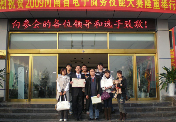 “建行e路通杯”2009年河南省电子商务技能竞赛从2009年4月开始启动,全省有50个分赛区的3000余名选手参加个人或团体赛。我校国际教育学院积极组织学生参加竞赛活动,大赛于10月20日完成了选拔赛,我校有四人入围。仝新顺、王初建两位老师对参赛学生进行了全程辅导。