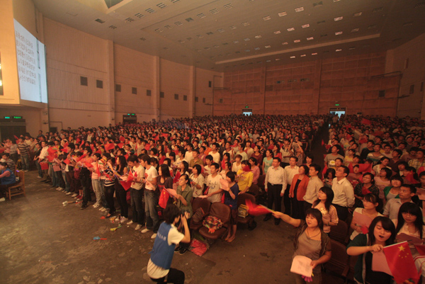 党委书记林世选、党委副书记张胜利与近1500名师生一起观看精彩的文艺节目,庆祝伟大新中国60年华诞。