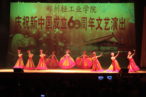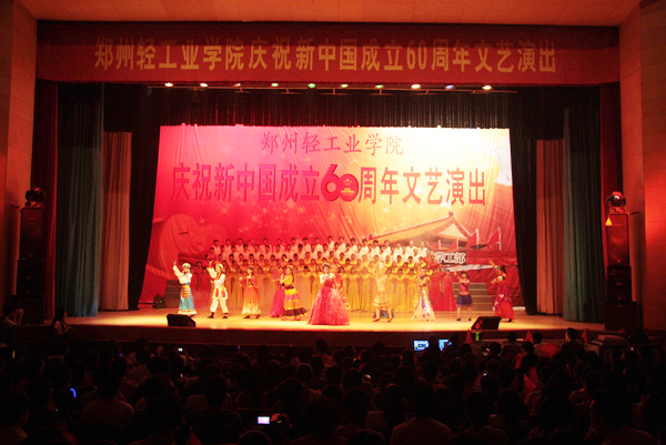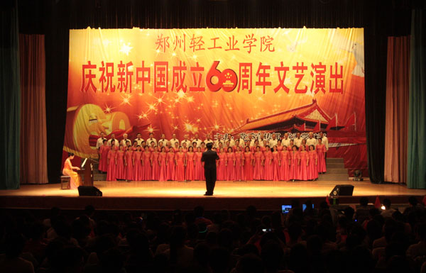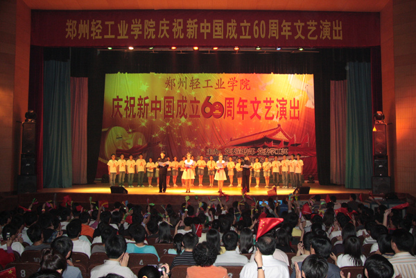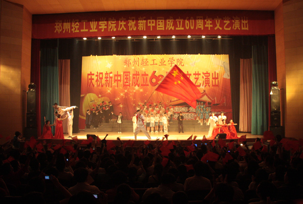 9月28日晚,学校大礼堂红旗招展、红歌嘹亮,由党委宣传部、党委学工部、校工会、校团委联合主办的我校庆祝新中国成立60周年文艺演出成功举行。