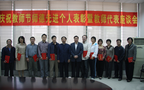 9月9日上午,学校在图书馆第三会议室召开师德先进个人表彰暨教师代表座谈会,庆祝第二十五个教师节。校领导林世选、剧乂文、张胜利、张希凡、陈江风、赵继红出席会议。受表彰的2007―2009学年师德先进个人、优秀教师代表,以及相关职能部门负责同志参加了座谈会。副校长赵继红主持会议。