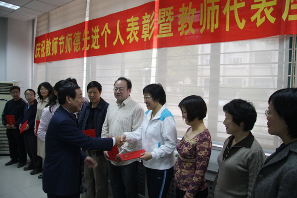 党委副书记张胜利宣读《关于表彰2007―2009学年师德先进个人的决定》,并向获表彰的教师表示了热烈的祝贺。