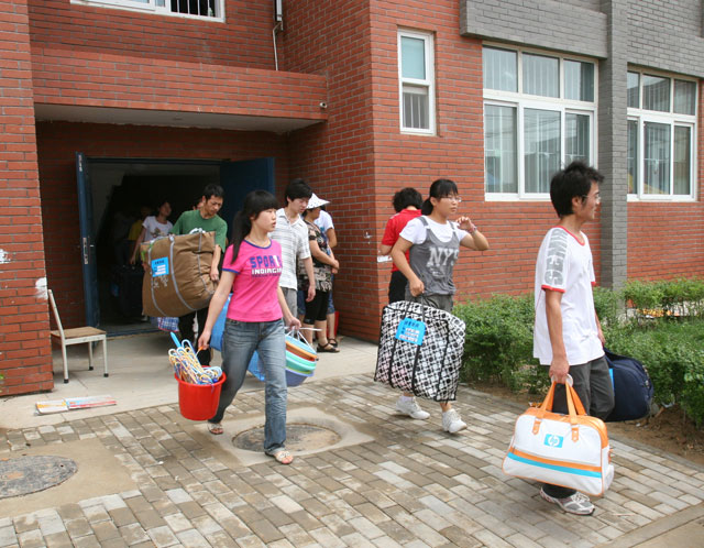 回迁学生依依不舍的搬出科学校区学生宿舍