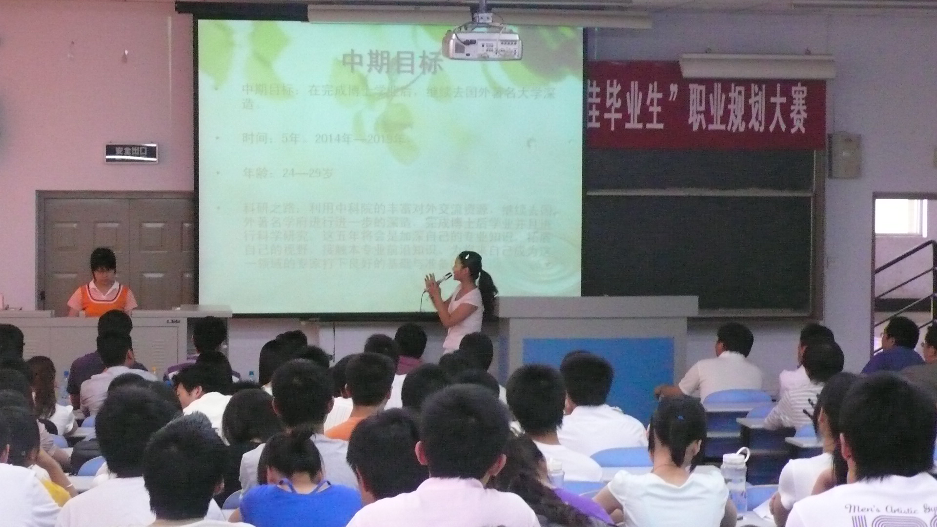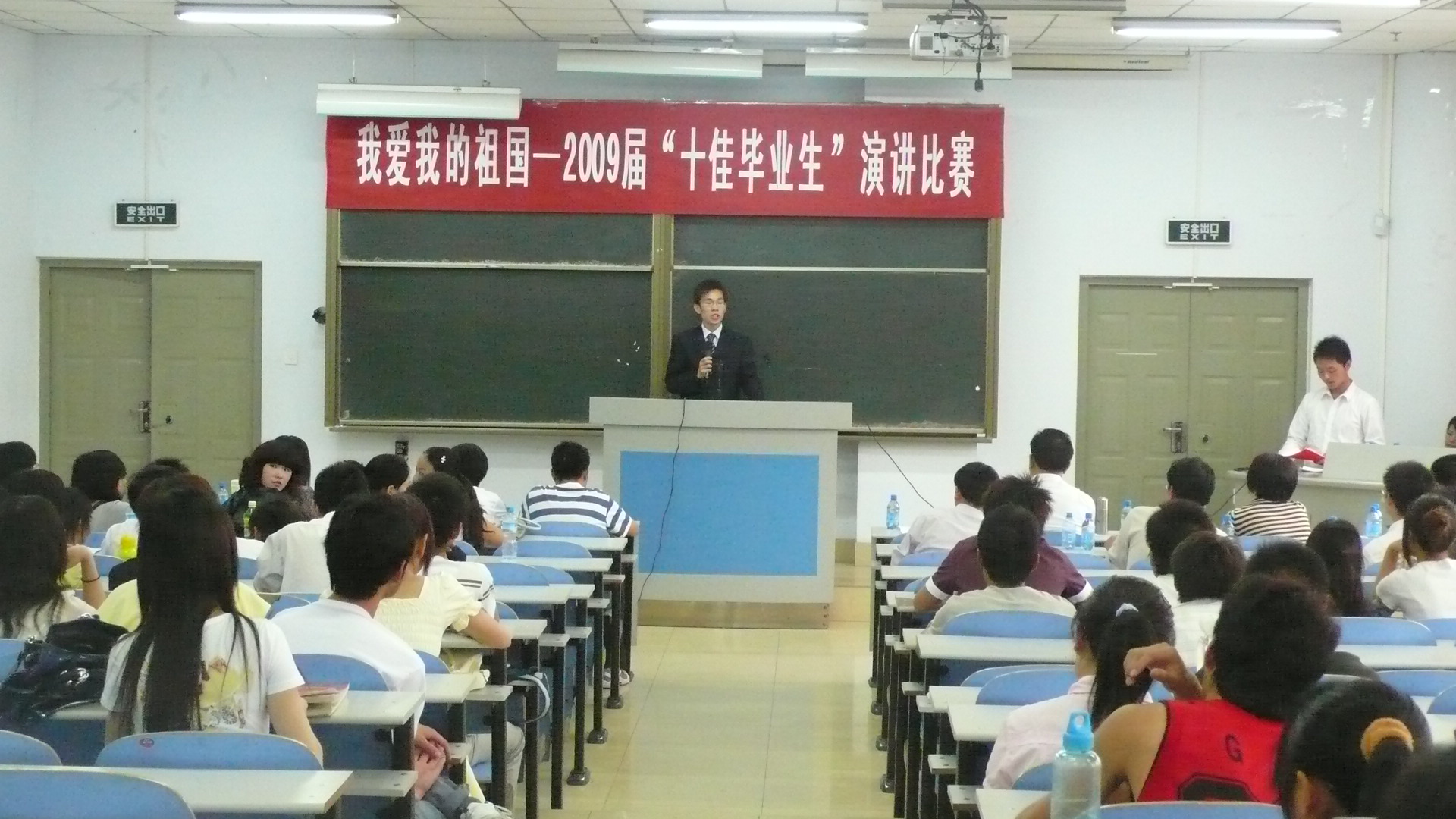 5月27日下午, 我校2009届“十佳毕业生”评选之“我爱我的祖国”主题演讲比赛和职业规划大赛在教三楼100和101教室同时拉开帷幕,600多名毕业生和在校生同学观看了比赛,来自12个院(系)的20名优秀毕业生候选人参加了比赛。