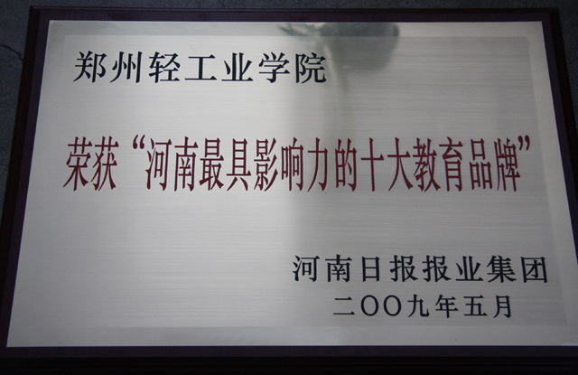 日前,在河南日报报业集团主办,河南公众及网友共同参与投票的2009河南教育品牌大型调查评选活动中,我校获得“2009河南最具影响力的十大教育品牌”(本科教育)称号。
