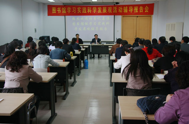 4月16日下午,党委书记林世选教授为我校图书馆全体职工做了一场学习实践科学发展观的专题辅导报告。图书馆全体职工参加了报告会。报告会由图书馆馆长王培义教授主持。