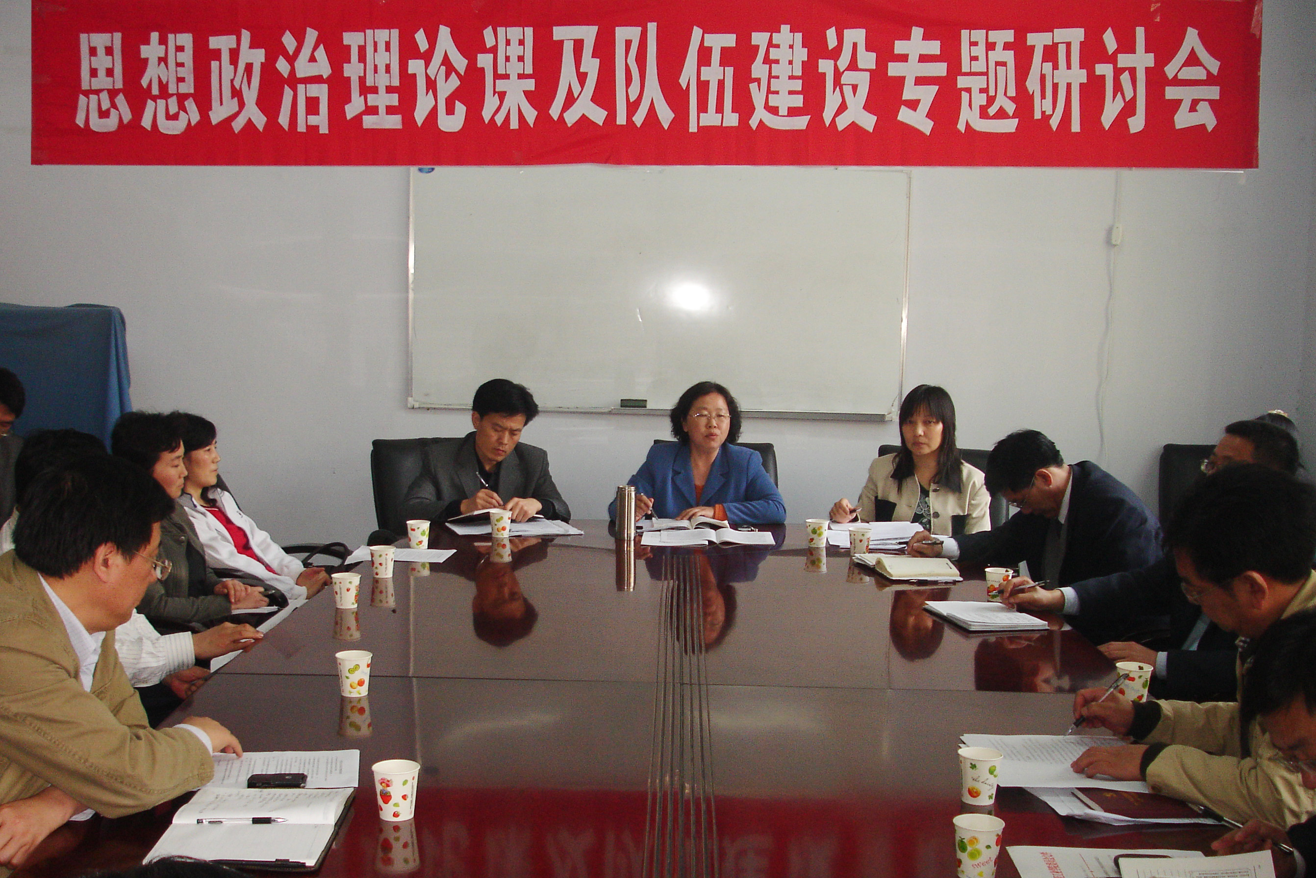 法政系党总支书记刘建秀介绍了我校思想政治理论课整体建设的情况。法政系、马列德育部副主任杨瑞勇汇报了近年来我校思想政治理论课建设取得的成绩及下一阶段的工作设想。
