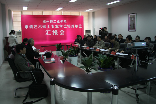会上,校长剧乂文教授代表学校致欢迎辞,并简要介绍了学校的办学历史、发展现状,以及近年来艺术设计学院在学科优势、师资队伍、学科建设与社会服务等方面取得的重要成果。剧校长希望专家组通过此次考察能加强对我校设计艺术学科的指导,推动设计艺术学科的加快发展,提升其学科优势和竞争力。岳修峰处长代表省学位委员会对专家组的到来表示欢迎,并高度评价了我校艺术学科的发展成绩和经验。他希望专家组和教育指导委员会充分考虑河南省实际需要,加大对郑州轻院设计艺术学科发展的支持力度,为河南省有艺术设计和创造才能的学子搭建一个进一步学习深造的平台。艺术设计学院院长曹阳进行主题汇报,向专家组介绍了我校设计艺术学科的学科概况,分三个方向(工业设计、视觉传达设计、环境艺术设计方向)详细汇报了师资队伍建设、科研工作成果、人才培养及实践教学条件建设等情况。