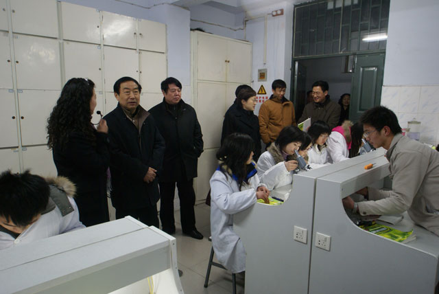 随后,校长剧乂文、副校长赵继红在该校区樊安新校长、常江书记等校区负责同志的陪同下,实地察看了学生食堂、化工实验室、食品焙烤实训室、车工实训室、啤酒酿造实训室等实验实训场所和教学基本条件,听取了相关教师对实验实训室的介绍,并和上课的学生进行了亲切交谈。