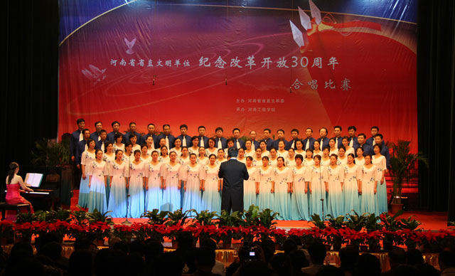 11月12日,我校代表队参加了省直文明单位纪念改革开放30周年合唱比赛,并在参赛的15支代表队中脱颖而出,荣获一等奖,为学校赢得了荣誉。