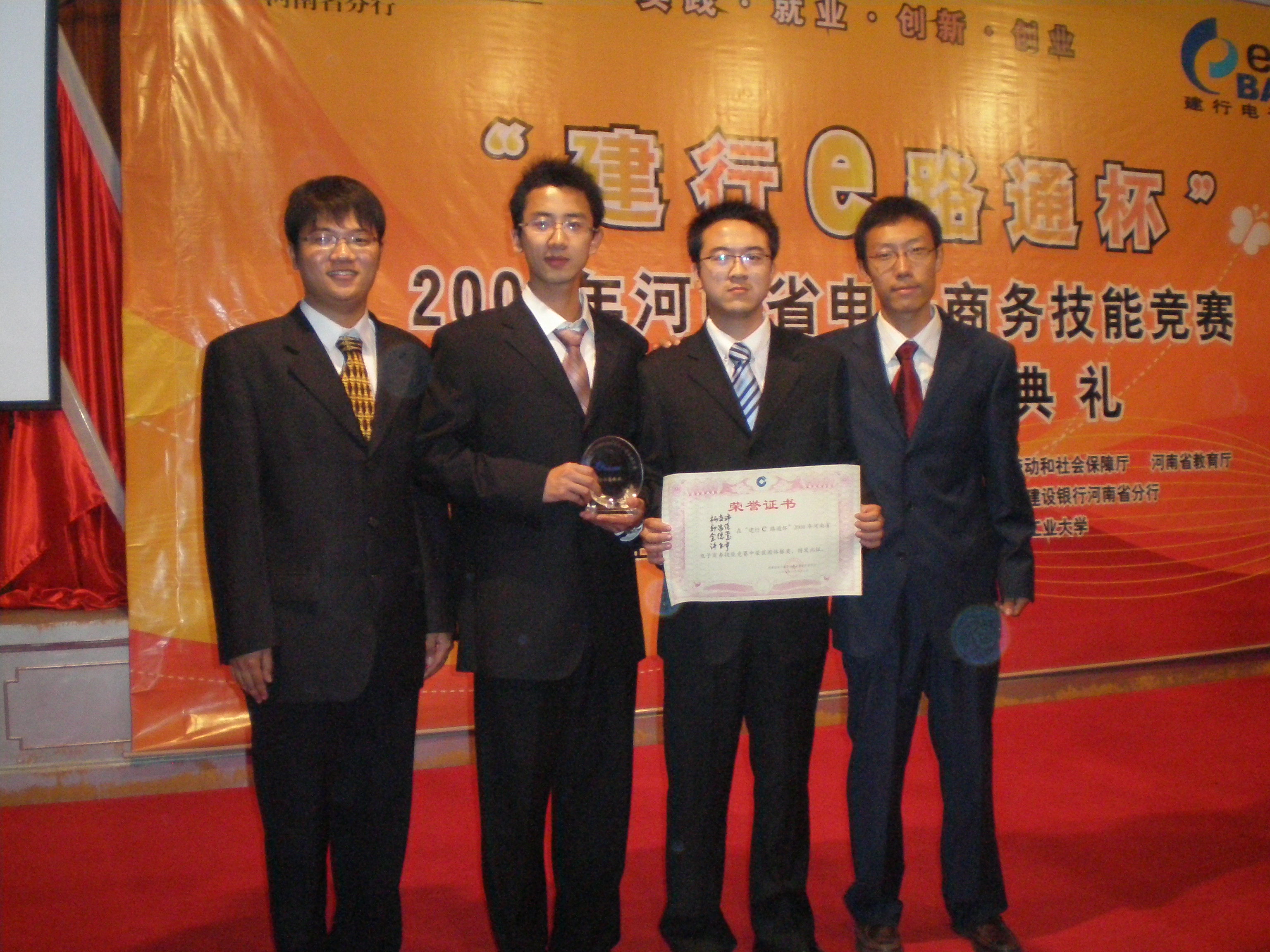 日前,“建行e路通杯”2008年河南省电子商务技能竞赛决赛在郑州市上街区人民政府礼堂落下帷幕,我校国际教育学院代表队取得了团体赛第二名的优异成绩。
